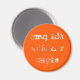 "omg idk wth u r sayin" in a cool, funky font on a fun, orange color, round magnet. A funny, humorous magnet for your fridge / dishwasher / kitchen / file cabinet, featuring today's generations' urban lingo. Just the thoughts of every teenager's folks. Makes a fun gift for family, friends, and yourself - and makes a great prank gift for friends and family members not in touch with the times.
