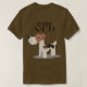 My 11 yo wore adult XL (5’7” 165#). The 8yo is small framed. She wore adult small and tied it in the back. Grandma wore adult large with long sleeve shirt underneath. Tall girl adult medium. Dark haired male adult large. Good quality dark Heather gray, Gildan brand shirt. -it was next up from basic choice and cost about $20 per shirt. Not too thick or thin. Washed and dried well, no major shrinkage. Not see-through. Can wear a bra under it fine. Screen print is just as shown and well done, front and back.