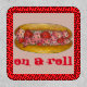 Design features a delicious Maine lobster roll sandwich, with ON A ROLL in a fun font. Created from an original marker illustration.