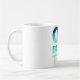 This typography mug features bold letters from an ocean photograph. The range of blues goes from dark to bright turquoise.