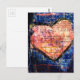 On Blue a Pink Heart Mixed Media Collage Postcard