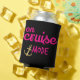 Enjoy your vacation with this black can cooler adorned with the design, on cruise mode in a pink with a gold accent anchor.