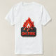 A small campfire in a papercraft style in bright red and orange colors with the text on fire in bright red letters on a black rectangle underneath.