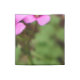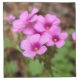 A cluster of violet wood-sorrel's pink flowers, with the clover-like leaves in the background.
