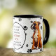 An adorable little Boxer Dog sits on two sides of this mug. The text between the two images says "On the 8th day, God created the BOXER DOG and called it VERY GOOD". The dog images and the white oval banner containing the text fields are placed on a white background with black paw prints.