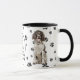 An adorable Springer Spaniel Dog looks out at you from two sides of this mug. The text between the two images says "On the 8th day, God created the SPANIEL and called it VERY GOOD". The dog images and the white oval banner containing the text fields are placed on a white background with black paw prints. Cute!