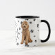 A beautiful Goldendoodle dog looks out at you from two sides of this mug. The text between the two images says "On the 8th day, God created the GOLDENDOODLE DOG and called it VERY GOOD". The dog images and the white oval banner containing the text fields are placed on a white background with black paw prints.
