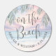 “On The Beach” appears in elegant flowing script at the center, while the couple’s names and wedding date wrap around the edge in a classic serif font for a polished and timeless finish. All text, fonts, and layout can be fully customized to match your wedding style.