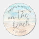 “On The Beach” is displayed in flowing script at the center, while the couple’s names and wedding date wrap around the edge in a clean font for a polished and balanced look. All text, fonts, and layout can be fully customized to match your wedding style.