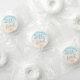 These custom Life Saver mint favors feature a calming seaside watercolor design printed on a sticker placed on the clear sleeve in soft shades of blue and tan, capturing the serene, coastal feel of the ocean meeting the shore.