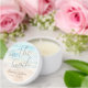 These custom mini candle favors feature a calming seaside watercolor design on the top of the lid in soft shades of blue and tan, capturing the serene, coastal feel of the ocean meeting the shore.