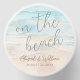 “On The Beach” is displayed in flowing script, with the couple’s names and wedding date below in a clean serif font for a polished, balanced look. All text, fonts, and layout can be fully customized to match your wedding style.