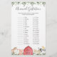 On The Farm animals themed baby shower animal gestation game card features a watercolor farm animals illustration and watercolor greenery eucalyptus garland and elegant handwritten style font.