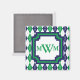 Argyle goes 8-bit with this classic navy blue, kelly green, and white color scheme with a light gray contrast stitch creating a perfect pattern for the golf course. Customize the monogram with the appropriate initials for a personalized touch.