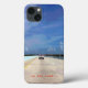 The brightly colored tropical view on this iPhone 13 Case is an original photograph by ZoeSPEAK, taken while riding the only road that runs all the way through the Florida Keys, ending at Mile Zero in Key West. The sky is deep blue with puffy white clouds. The sunny sand colored road ahead, with its yellow and white stripes, is bordered by aqua guardrails. The horizon is marked by dark green mangrove trees and a few beach houses along the dark blue water. Straight ahead in the distance is a white car, also on the road through the keys...The text is set to personalize or delete if you prefer.