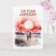 On your Anniversary Card - A lovely image of a couple walking along the beach, a full moon in a red, pink sky. The ocean gently lapping the shore.