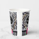 "Beautifully design black and white paper cups. This paper cups have a black and white design with an image of a crystal heart. At the end of the crystal rose is a lovely pink rose. There are paper plates and paper napkins that are available with the same matching design.