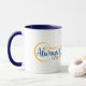 I was thrilled this came out so well. It is a very attractive mug with the colored handle and interior. Being able to personalize it was easy! It was designed for an end of the year thank you gift to the special recipient. perfect. Text lines up perfectly parallel to the top edge of the mug.