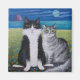 Tuxedo cat and a tabby under a full moon at the beach