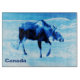 A monochrome (blue) image of a cow moose which walked through my yard in Alaska. Text reading "Canada" also appears. Moose are year-round residents in many Alaskan communities. Here in Anchorage there are about 1500 animals, along with wolves, brown bears and other wildlife.They are usually well-behaved. They often cross streets at the crosswalks after waiting for a walk signal.