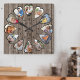 Create your own multi photo clock to tell your story - the center of the clock face is lettered with "Once upon a time" in handwritten typography. Use the photo template to add 12 of your favorite photos, which will be displayed in heart shaped frames. The design uses portrait vertical photos for all numbers except 3 and 9 which are in landscape horizontal format. The clock face has simple numbers with a rustic dark brown wood effect background.