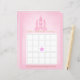 Pink fairytale baby shower bingo for a shower game for a boy or girl in blue and gold, with a magical pink castle.