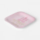Pink fairytale "Once Upon A Time" baby shower paper plates for a girl in pink and gold, with beautiful typographic flourishes. Script text reads Once Upon A Time" in gold, with a magical castle.