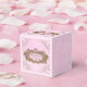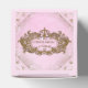 Once upon a time fairy tale princess birthday party and baby shower favor boxes with fancy gold glitter crown on a beautiful pink and gold lace swirl background. You can add text to personalize.
