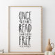 Once you learn to read, you will be forever free, Frederick Douglass quote. Inspirational quote, Book lover gift, Teacher gift, Office decor, Classroom wall art.