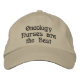 The design was easy to do with a number of options both the hat style, color and so forth. These aren't some printed letters, these are the real deal stitching. The two hats arrived quickly. I've used Zazzle in the past for shirts a number of times and this is the first time for a hat. Zazzle is absolutes the best in every respect; customer service, product selection and results. The embroidery was just right. My artwork was turned into a professional look thanks to Zazzle.
