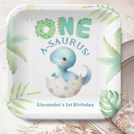 One A-Saurus Cute Boy Dinosaur 1st Birthday Designed by H-Art Studio Design