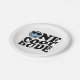 One cool dude blue retro preppy smile 1st birthday paper plate.