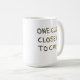 A simple, illustrative text-based design featuring the motivational quote "ONE CUP CLOSER TO CALM." The hand-drawn style typography uses a subtle black to golden-brown gradient against a light gray background, making it perfect for a minimal aesthetic on a sweatshirt, t-shirt, mug, or as a cozy, inspiring graphic for coffee and tea lovers.