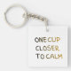A simple, illustrative text-based design featuring the motivational quote "ONE CUP CLOSER TO CALM." The hand-drawn style typography uses a subtle black to golden-brown gradient against a light gray background, making it perfect for a minimal aesthetic on a sweatshirt, t-shirt, mug, or as a cozy, inspiring graphic for coffee and tea lovers.