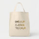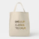 A simple, illustrative text-based design featuring the motivational quote "ONE CUP CLOSER TO CALM." The hand-drawn style typography uses a subtle black to golden-brown gradient against a light gray background, making it perfect for a minimal aesthetic on a sweatshirt, t-shirt, mug, or as a cozy, inspiring graphic for coffee and tea lovers.