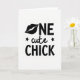 This card features a high-contrast black-on-white layout with the phrase “ONE cute CHICK” centered for instant focus. The “O” in “ONE” is replaced by a small pair of puckered lips, adding a flirty touch that feels like a wink between close friends. “ONE” appears in tall, dark uppercase letters, while “cute” sits just below in a flowing, cursive-style lowercase that softens the look. A small solid star appears on each side of “cute,” like tiny accents framing the word with a little sparkle 🌷. The final word, “CHICK,” is set in sturdy uppercase lettering that anchors the design with confident balance. Everything stays in a simple monochrome palette, letting the shapes and letterforms do the talking without extra scenery. The lips icon is filled in black, and the two stars are small, black, five-pointed shapes placed evenly to the left and right of “cute” 🐰.