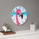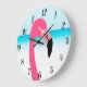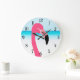 One cute pink flamingo on the beach large clock