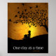 “One Day at a Time” Live in the present, and don’t worry about tomorrow. Minute by minute, hour by hour, step by step – one day at a time. It’s a favorite slogan used in recovery and 12 step programs … suggesting we gradually heal and become free of our addictions ‘one day at a time’. Design: Female silhouette at peace, sitting under a tree.
