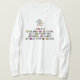 I love this artist. Their designs are cute and whimsical. But I ordered too large a size. I don’t mind as I’m going to use it to sleep in. I’ll probably order this in a short sleeve style to wear in the summer. My family loves my chocolate chip cookies so this design has significance for me. Bright and bold. It was off center but that was my fault as I edited the design. Should have left it alone but was just trying out the editing feature. Great editing system to play around with and change things up a little bit