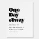 One Day Away: rehearsal dinner welcome sign. Choose a retro vintage for your wedding stationery. Classic Bblack and white theme, yet trendy, it will suit all your needs. Easily customizable, you change the text color or the background as you like.