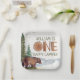 Cute and unique woodland, bear - one happy camper-1st birthday name birthday paper plates. Customizable!