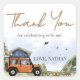 Personalize your party details with this Happy Camper Birthday Square Sticker. A clean and charming accent that highlights the moment and adds a cohesive touch to your birthday decor.