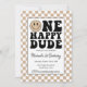 One Happy Dude 1st birthday party invitation. Tan checkered background and black accents