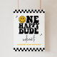 This super cute retro ONE HAPPY DUDE 1st Birthday Boy birthday Welcome Sign features a yellow and black retro smileface with lightning bolt eyes. This One Happy Dude Birthday Welcome Sign is sure to complete any One Happy Dude Themed birthday party! By using the easy to use Zazzle software (no download necessary) right in your browser, you simply purchase and personalize all in the same place. It's as easy as that!