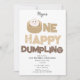 A beautiful hand drawn dumpling birthday invitation design. A cute "One happy dumpling" dumpling themed first birthday party invitation. A cute dumpling themed birthday invitation that can be customized to your details.