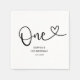 The white napkin embodies a sense of pristine purity, embodying the minimalist aesthetic. The word “One” is the focal point, adorned with a whimsical script calligraphy that radiates a youthful spirit. The letters dance and flow with joyful energy, capturing the essence of childhood wonder. Adjacent to the word, a charming heart with a gentle swirl adds an endearing touch, symbolizing the love that surrounds the little one on this special day.