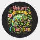 A vibrant, whimsical chameleon illustration celebrates individuality and self-love with bright colors and playful charm.