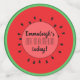 Customize this cute, red, green, and black watermelon with a name template that has "One in a melon today!" Gender neutral.