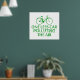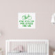 A silhouette of a green bicycle and below it the phrase "One less car polluting the air"