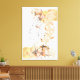 "One Line Face Art with Butterflies, Peach Florals & Gold Accents – Canvas Print"